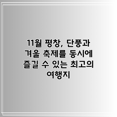 A1: 11월 평창에서는 가을의 화려한 단풍과 겨울의 시작을 동시에 경험할 수 있으며, 특히 평창 송어축제와 다양한 겨울 스포츠를 즐길 수 있습니다.