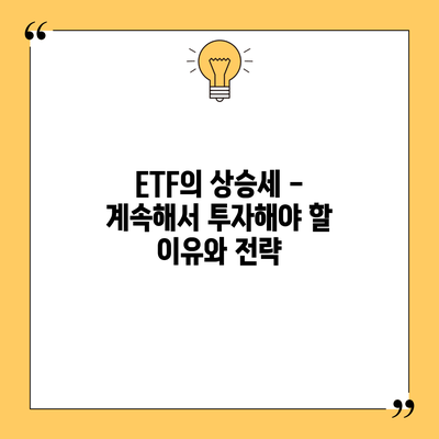 ETF의 상승세는 지난 몇 년 동안 많은 투자자들의 관심을 끌어왔어요. ETF는 다양한 자산에 동시에 투자할 수 있는 매력적인 금융 상품으로, 현재의 경제 환경 속에서 더욱 인기를 얻고 있어요. 그렇다면 ETF에 대한 투자가 왜 계속해서 중요한지, 그리고 지금 투자해야 하는 이유를 자세히 살펴볼까요?