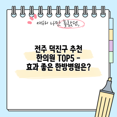 Q2: 전주 덕진구의 추천 한의원 TOP5에는 어떤 곳이 있나요?