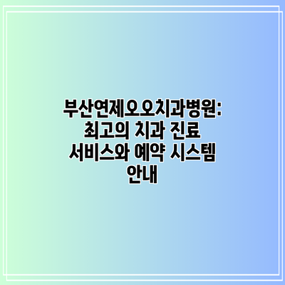 부산연제오오치과병원: 최고의 치과 진료 서비스와 예약 시스템 안내