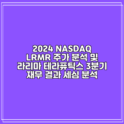 2024 NASDAQ LRMR 주가 분석 및 라리마 테라퓨틱스 3분기 재무 결과 세심 분석