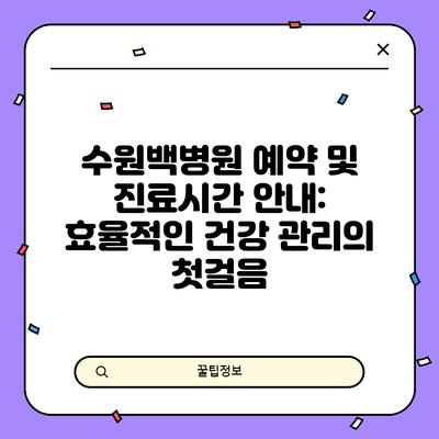 수원백병원 예약 및 진료시간 안내: 효율적인 건강 관리의 첫걸음