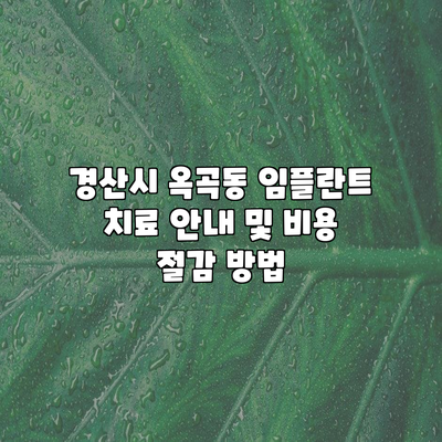 경산시 옥곡동 임플란트 치료 안내 및 비용 절감 방법
