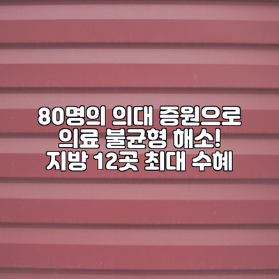 의사 수의 불균형이 심각해지는 가운데, 의대 증원 80이 지방 의료 인프라 강화를 위한 중요한 전환점이 되었습니다. 특히 이번 증원으로 의료 불균형 해소와 함께 12개 지방 지역이 최대 수혜를 받을 것으로 기대하고 있습니다. 올바른 정책과 함께, 각 지역의 의료 서비스 질이 어떻게 달라질 수 있을지에 대해 자세히 알아보도록 할게요.