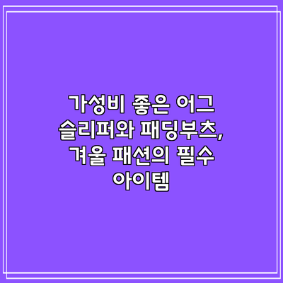 겨울이 깊어지는 요즘, 따뜻하고 스타일리시한 패션 아이템을 찾는 데 어려움이 있으신가요? 어그 슬리퍼와 패딩부츠는 겨울에 특히 각광받는 가성비 최고의 선택지로 많은 사람들에게 사랑받고 있어요. 이제 이 두 아이템의 매력과 특성, 그리고 추천 제품들을 자세히 살펴봅시다.