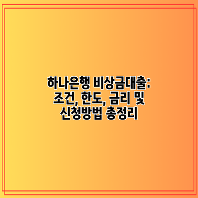 하나은행 비상금대출: 조건, 한도, 금리 및 신청방법 총정리